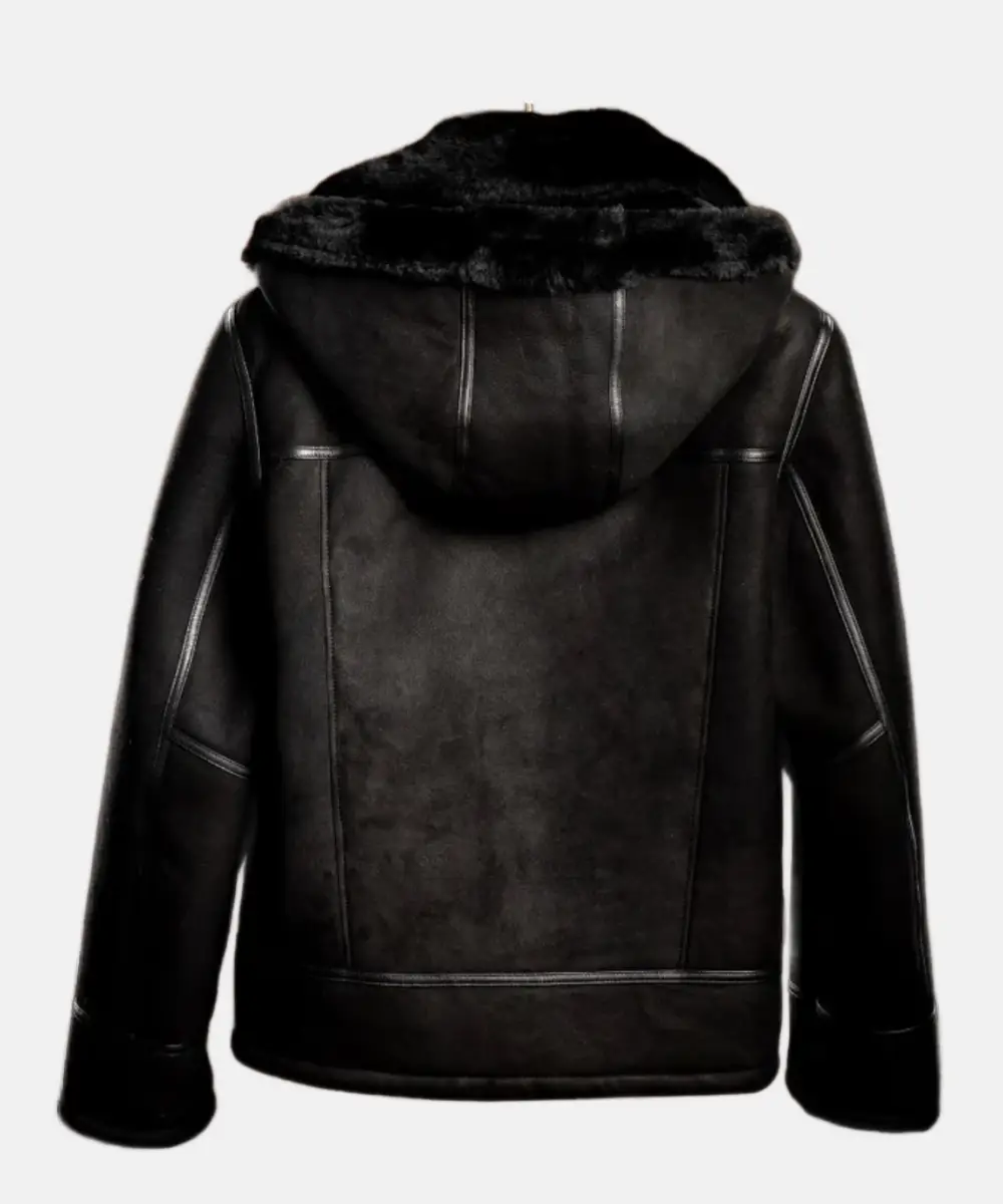 Bronco Distressed Black Leather Shearling Jacket