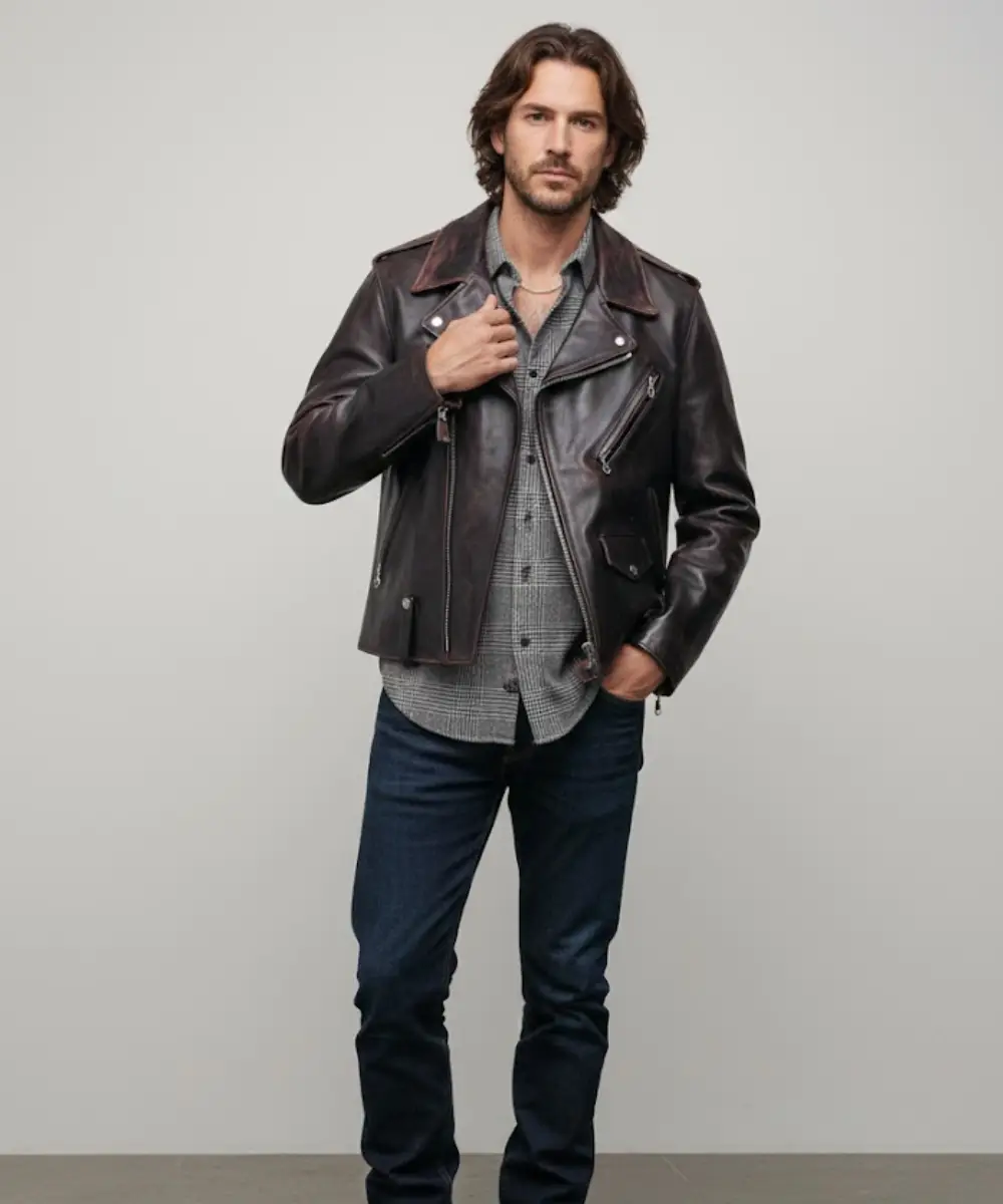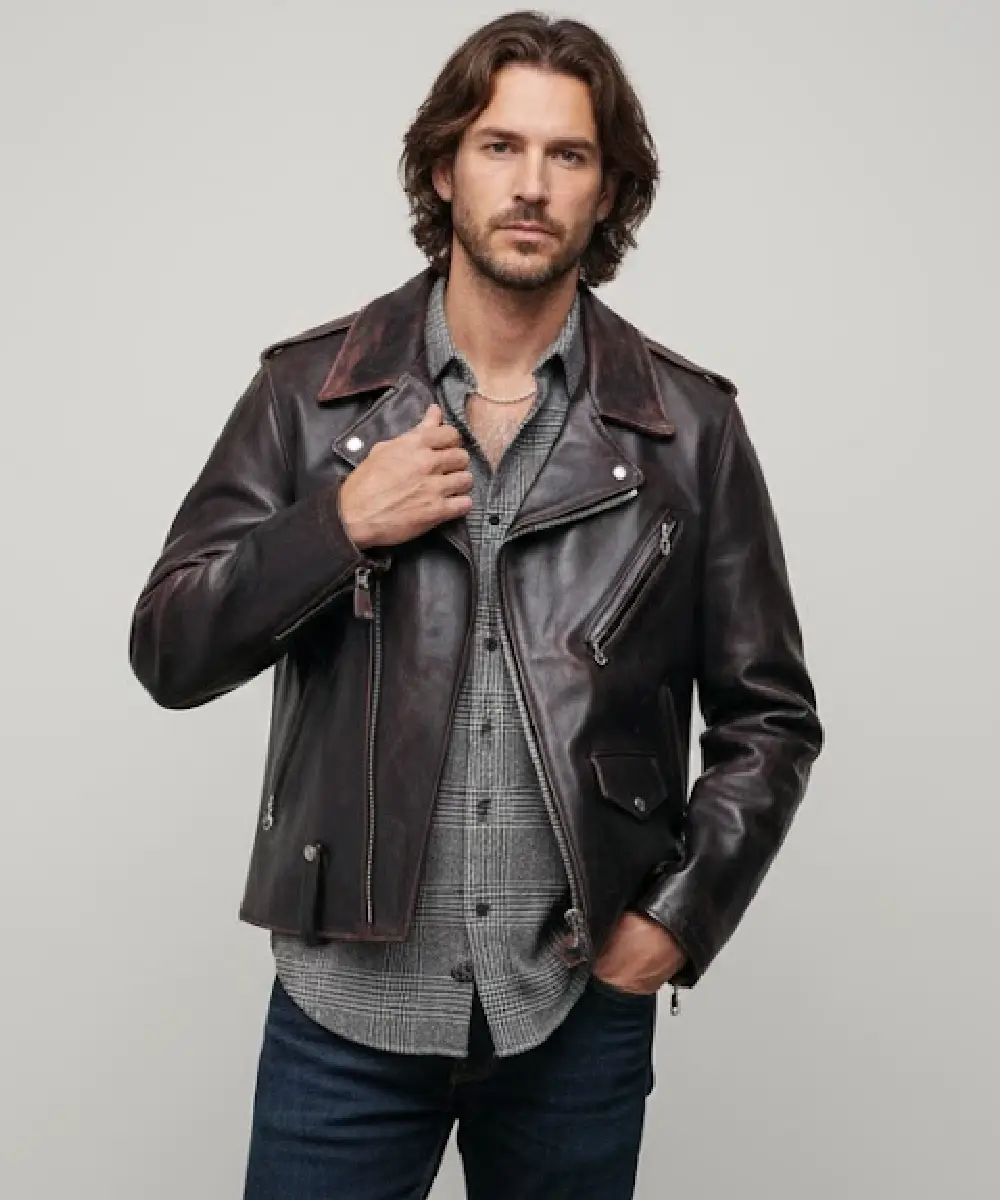 Horween CHiPs Style Horsehide Perfecto  Brown Chocolate Leather Biker Jacket