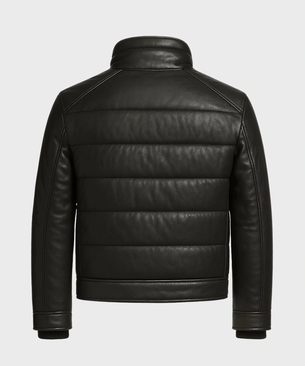 Shop Biker Black Moto Puffer Leather Jacket For Men’s