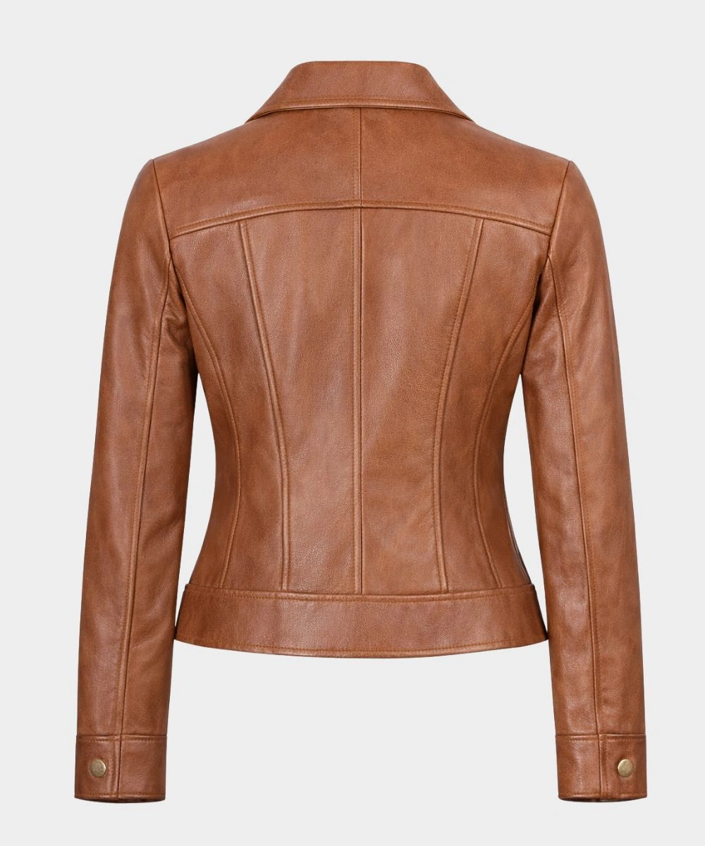 Women’s Tan Motorcycle Biker Leather Jacket